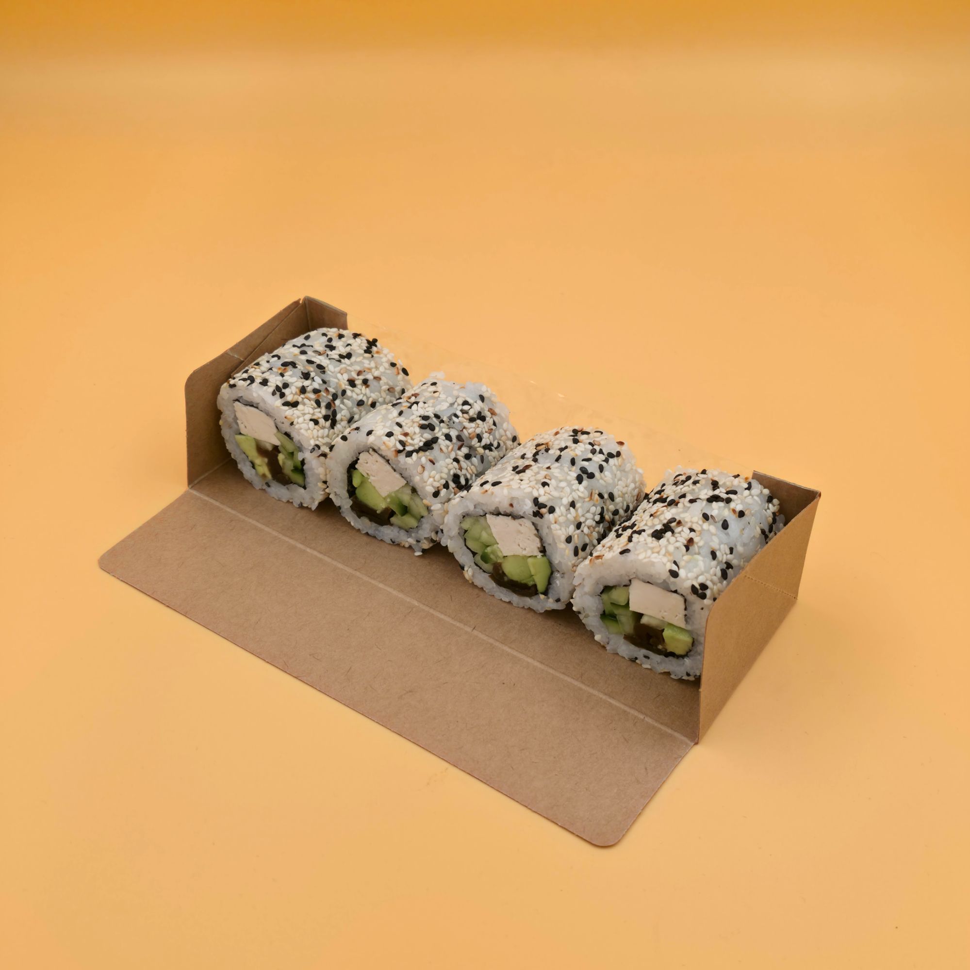 tofu, ogórek, tykwa marynowana, awokado, rzepa marynowana, sezam -